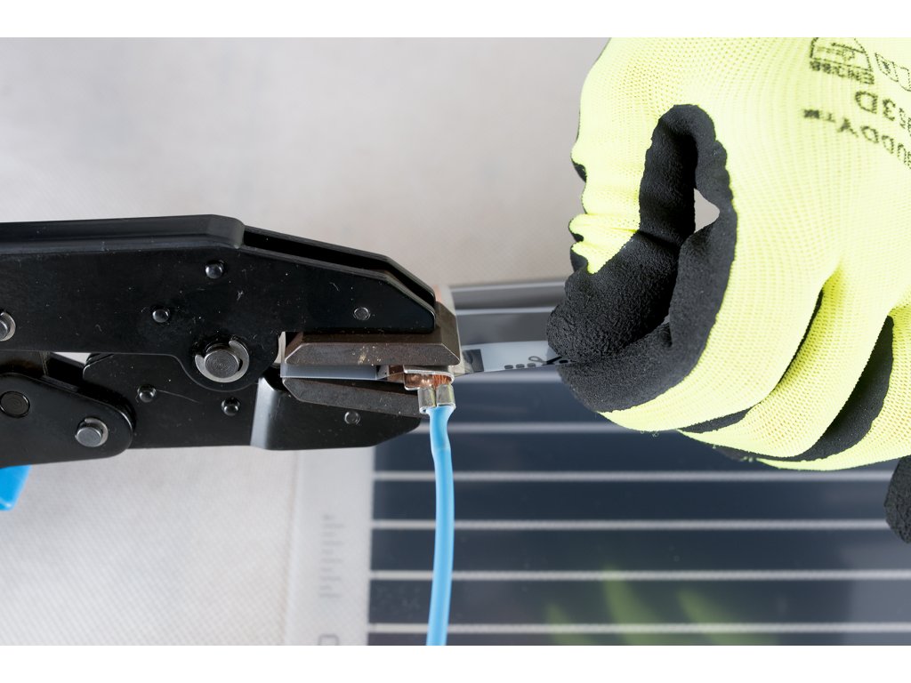 Krimpovacie kliešte určené na pripojenie konektorov k vykurovacím fóliám a pripojenie vodičov ku konektorom. Profesionálne kliešte zaručujú pevné spojenie konektora s fóliou vždy, keď sú kliešte úplne pritlačené na doraz.